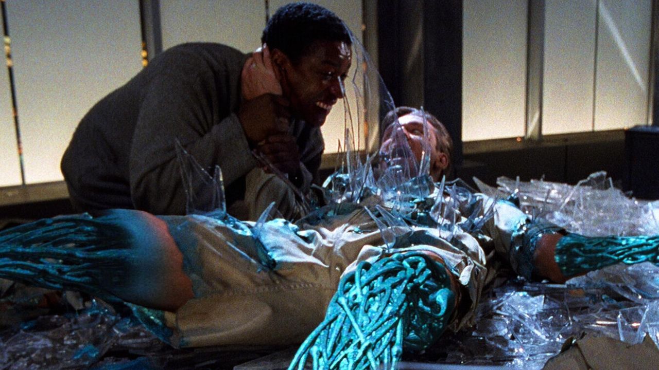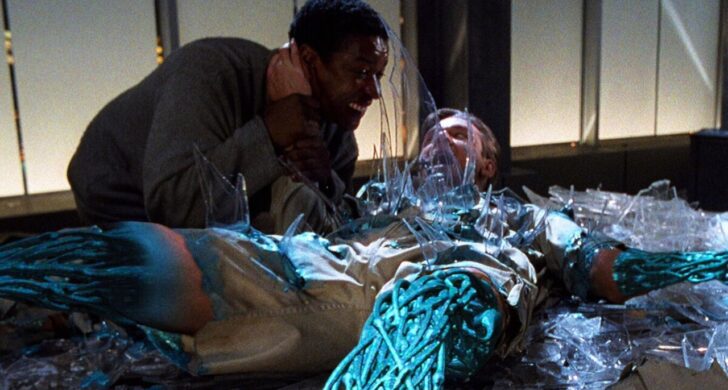 Le film de Leonard se veut plus simple dans son ambition. Plutôt que de se perdre dans de grandes réflexions métaphysiques, il cherche surtout à nous mettre en garde contre la création d’une IA suffisamment puissante pour apprendre de nos gestes, anticiper nos réactions et échapper peu à peu au contrôle humain. Le résultat est un thriller globalement divertissant, mais qui repose très fortement sur le fond vert et les effets numériques de l’époque, ce qui donne à son dernier acte un aspect visuel assez chaotique, un peu comme dans le déjà cité Johnny Mnemonic. Cela ne le rend pas injouable aujourd’hui, loin de là, mais il faut avoir en tête que nous ne sommes pas face à l’Avatar des années 90, et que trente ans plus tard, son âge se voit clairement à l’écran. Ce n’est d’ailleurs peut-être pas son principal défaut.